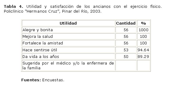 Effectiveness of physical exercise in longevity. “Hermanos Cruz” Outpatient Clinic. Pinar del Río, 2003