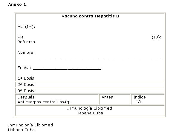 38. González Griego A. Ramírez Albajés V. Julio O. Lecuna V. Torres J. Carrelbo F. Fernández J. Dinámica de la respuesta inmune con la Vacuna Recombinante Anti-HB Cubana en países de Latinoamérica Rev. De Gastroenterología de México 1994, 59:116.