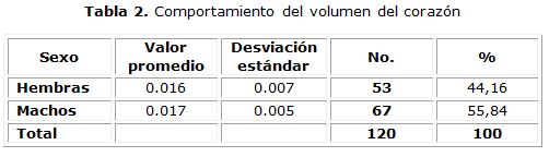 En la muestra de estudio predominaron los machos con un 55,84%, se observó una disminución del peso del corazón en ambos sexos (tabla 1).