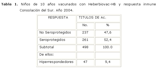 Immnune response to the Heberbiovac-HB and risk factors, Consolación del Sur 2004