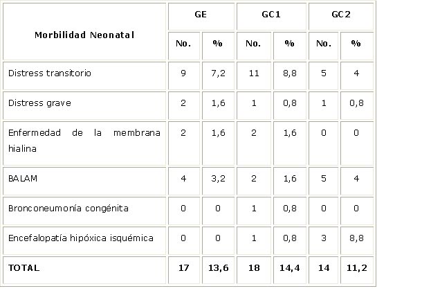 Se comprobó que ninguno de los grupos tenía más morbilidad neonatal.