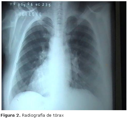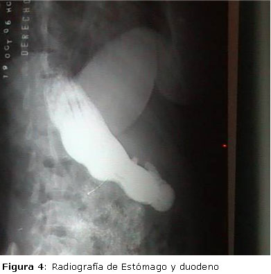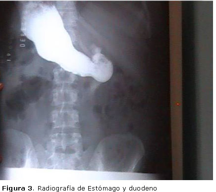 Para corroborar el diagnóstico se realizaron estudios electrocardiográficos (Figura 1) e imagenológicos: ultrasonido, Rx estómago y duodeno (Figura 3 y 4) y Rx tórax (Figura 2).