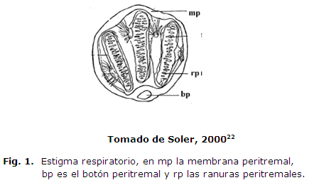El diagnóstico primario es clínico y la confirmación es entomológica.2 Para el diagnóstico entomológico se utilizan los estigmas respiratorios de las larvas o peritremos situados en el último segmento de la larva III, en base a la morfología de la membrana peritremal, el botón peritremal y las ranuras peritremales. (Figura 1)